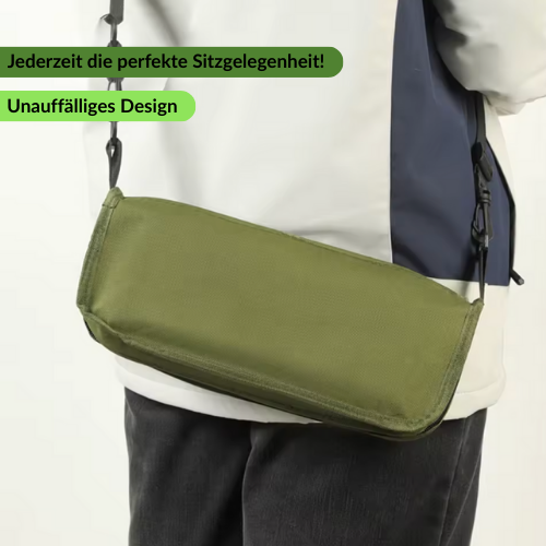 Was aussieht wie eine coole Shoulder Bag/Rucksack, verwandelt sich in Sekundenschnelle in einen bequemen, stabilen Stuhl – ganz ohne Werkzeug, ohne Aufwand. Ob im Park, auf Festivals, beim Wandern, am See oder auf Reisen: